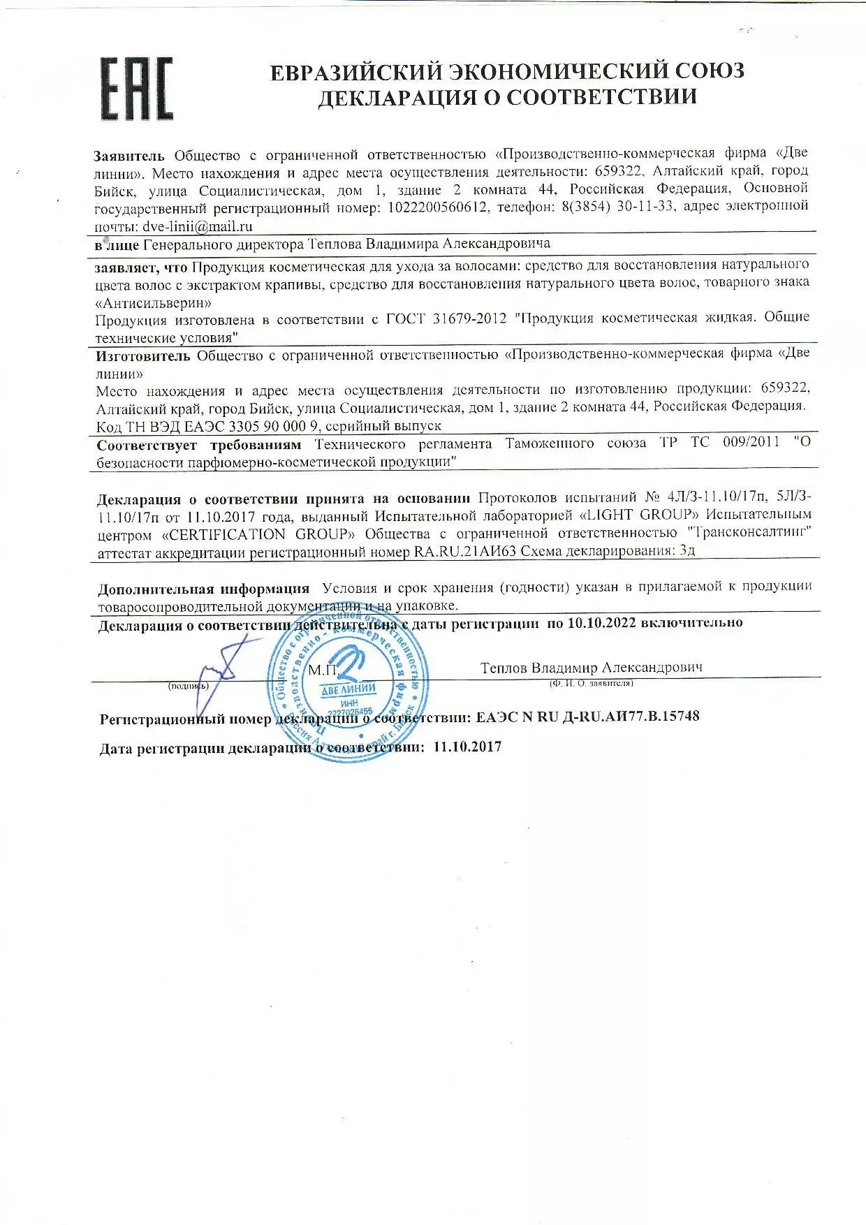 Антисильверин — средство для восстановления натурального (естественного) цвета волос