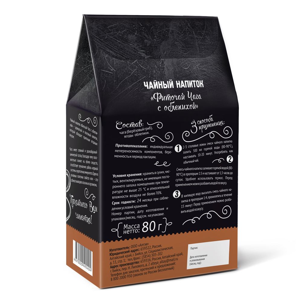СОСТАВ:чага, ягоды облепихи.