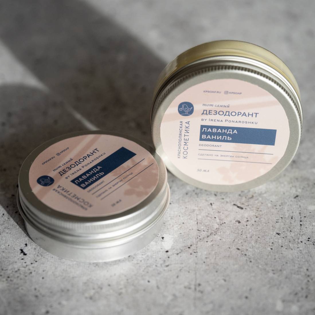 Дезодорант-крем «Лаванда-ваниль by Irena Ponaroshku» — это 100% натуральная эффективная формула, позволяющая решить проблему излишнего потоотделения и неприятного запаха, не нарушая естественной работы потовых желез и дыхательной функции кожи.