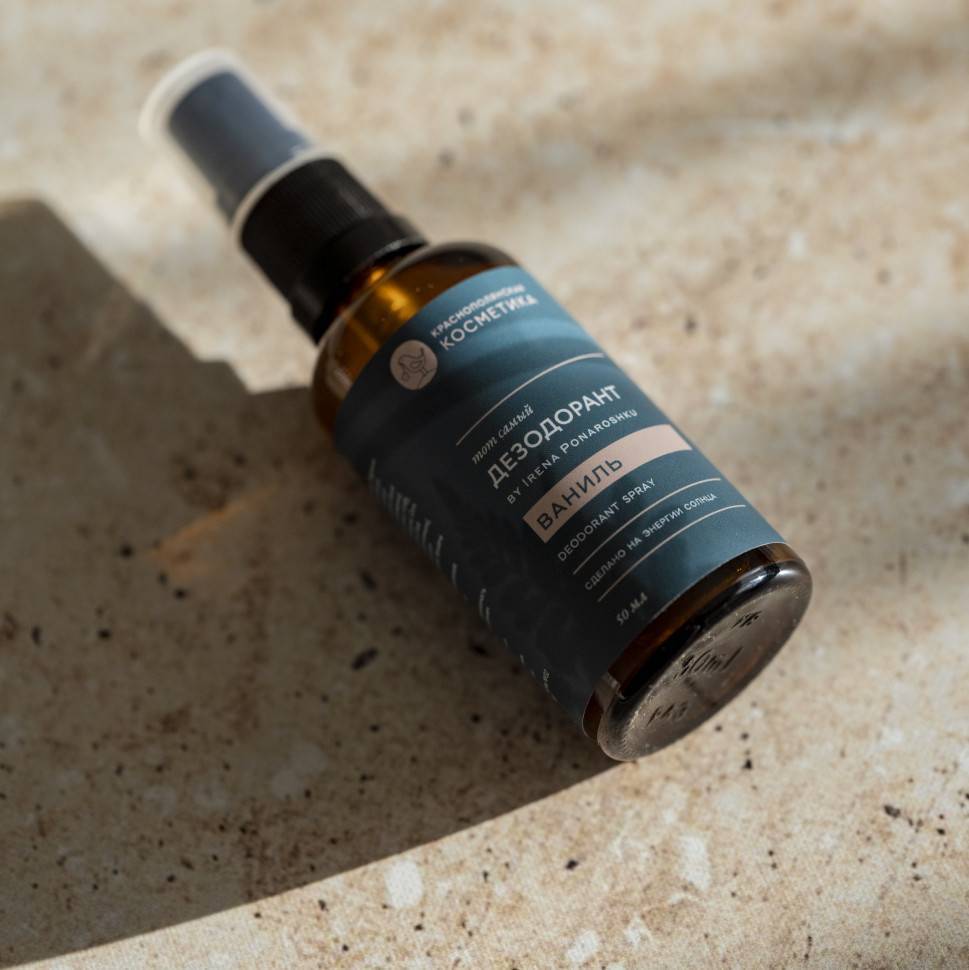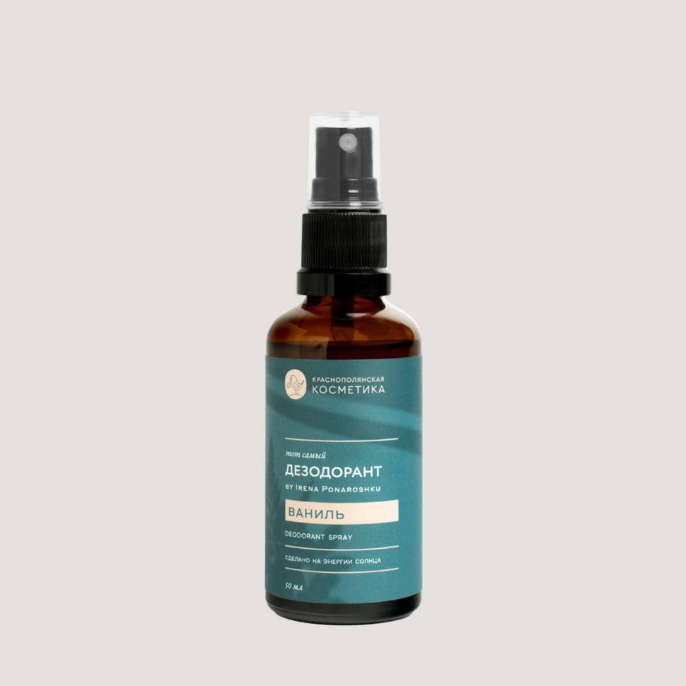 Дезодорант – спрей «Ваниль By Irena Ponaroshku» — это 100% натуральная эффективная формула в удобном формате, позволяющая решить проблему излишнего потоотделения и неприятного запаха, не нарушая естественной работы потовых желез.