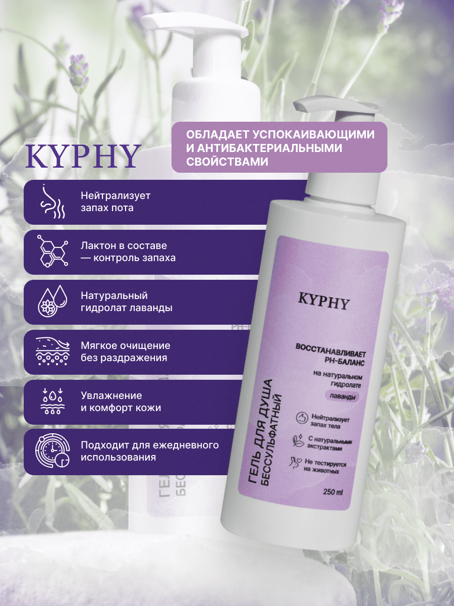 Погрузитесь в ощущение свежести и природной чистоты с нашим гелем для душа на натуральном гидролате лаванды.