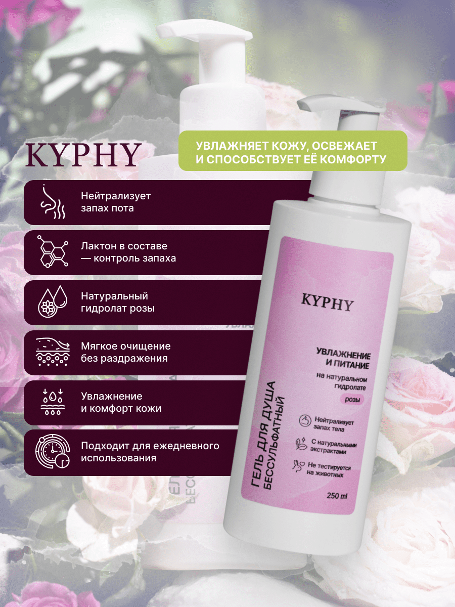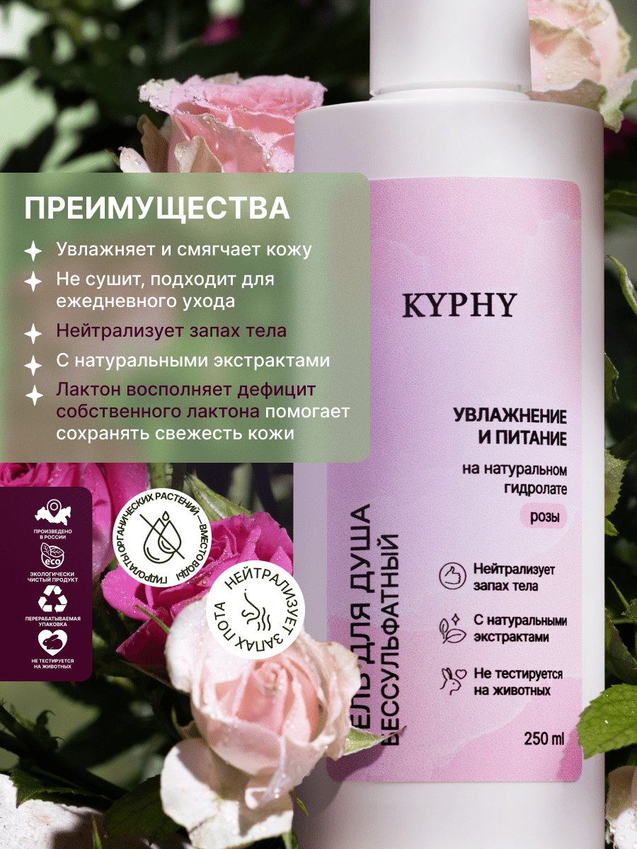 Погрузитесь в ощущение свежести и природной чистоты с нашим гелем для душа на натуральном гидролате розы.