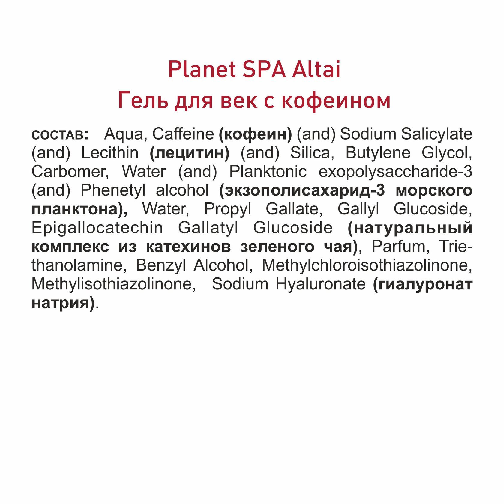 СОСТАВ: кофеин, лецитин, экзополисахарид морского планктона, натуральный комплекс из катехинов зелёного чая, гиалуронат натрия.