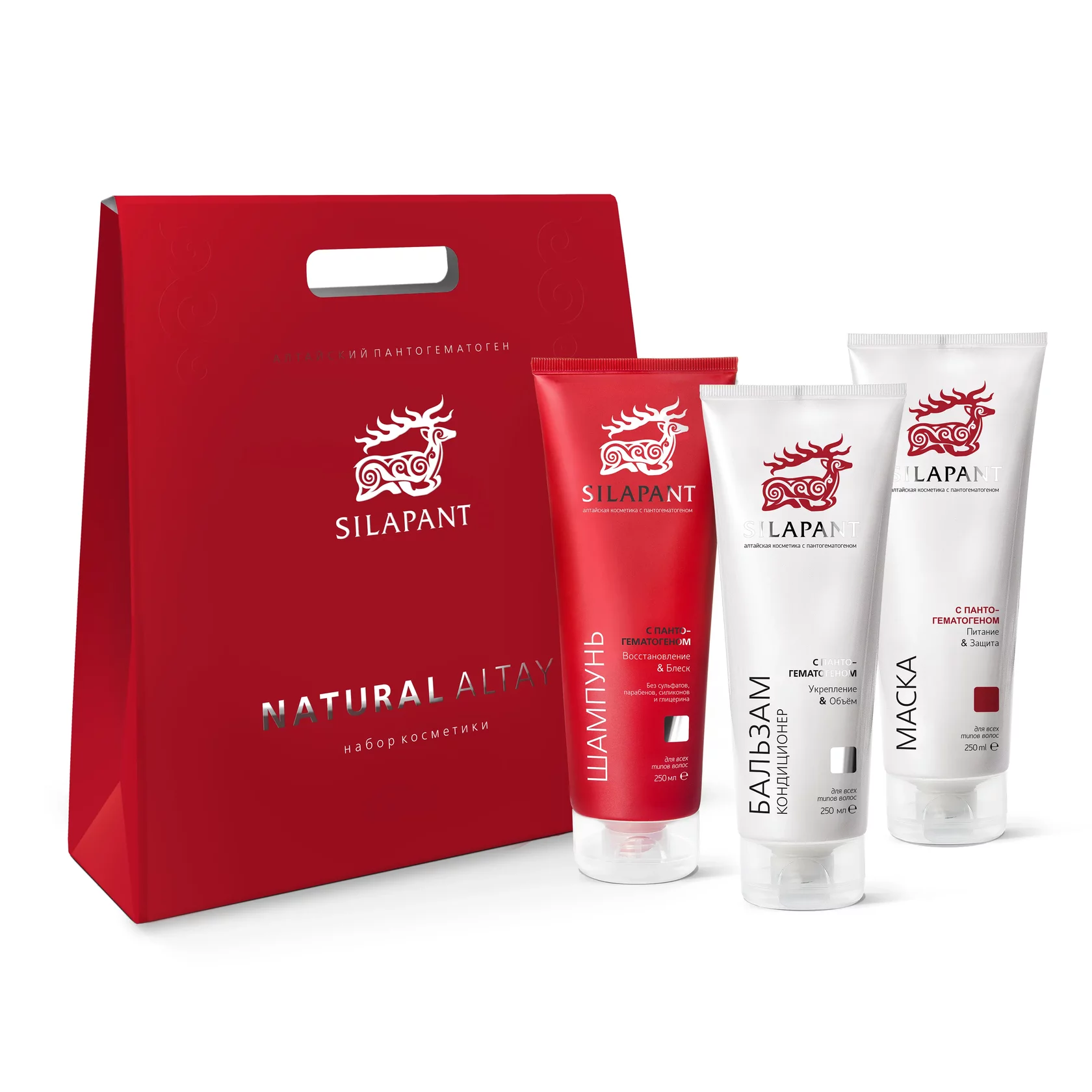 В набор входят: Шампунь с пантогематогеном и Бальзам кондиционер Маска для волос