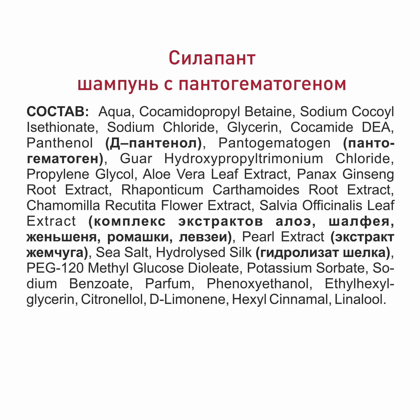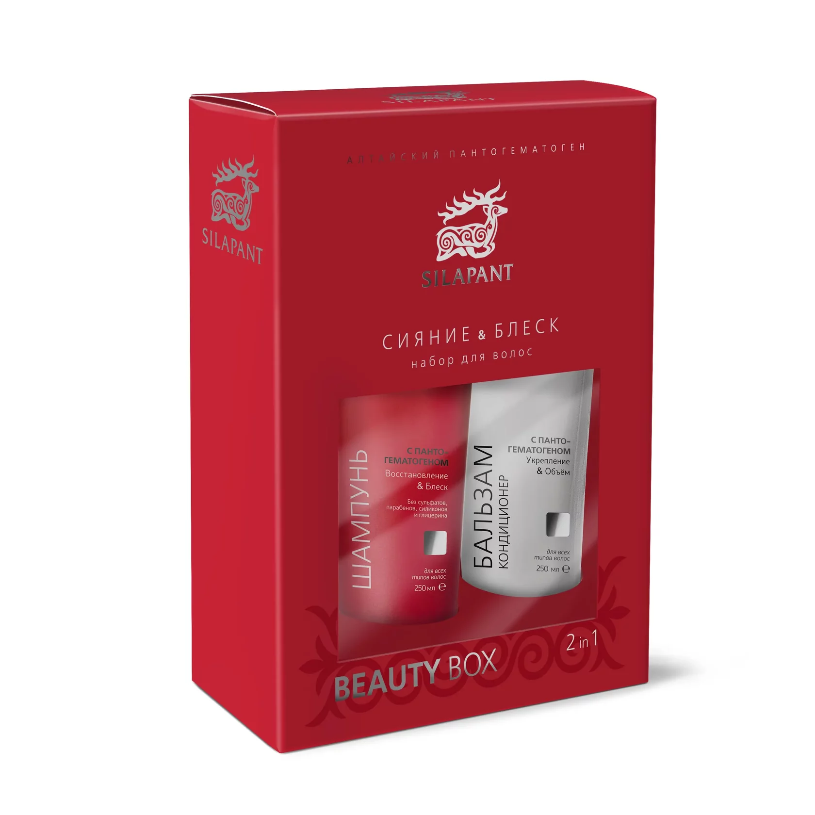 В набор входят: — Шампунь с пантогематогеном «Силапант» — Бальзам-кондиционер «Силапант»