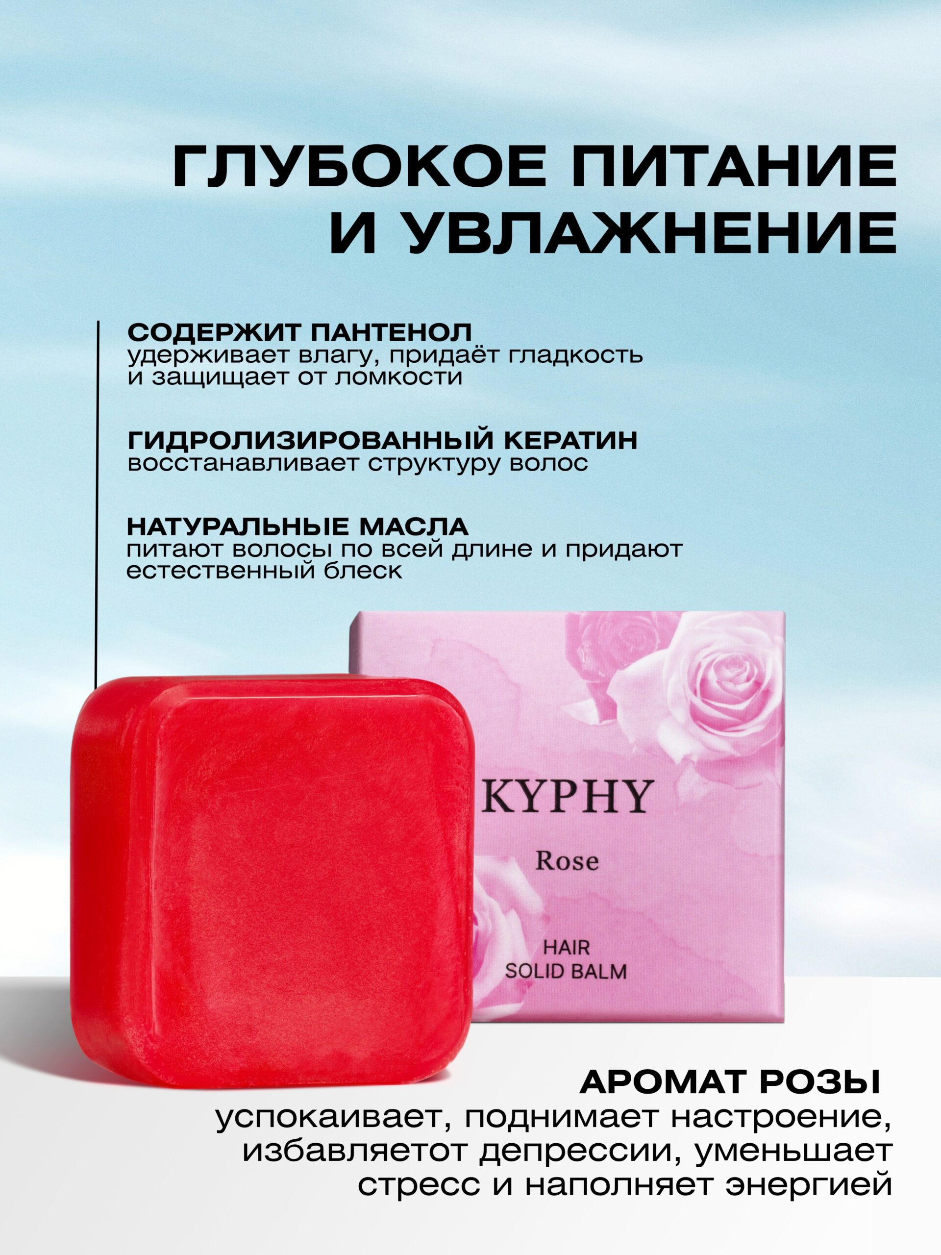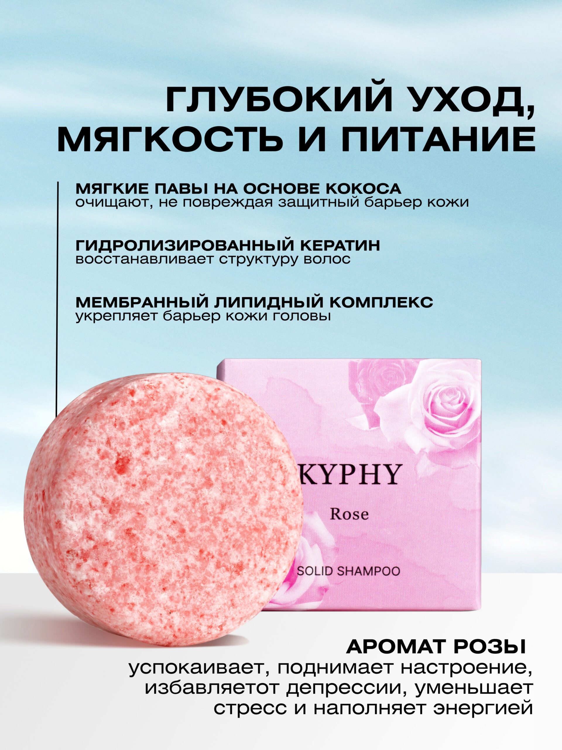 Натуральный шампунь и бальзам не содержат силиконы, парабены, SLS, SLES, искусственные красители и ароматизаторы. Подходят для ежедневного применения. Твердый шампунь для волос и твердый кондиционер удобно брать в поездки, в спортзал и путешествия. Уходовый набор для волос KYPHY с нежным ароматом розы — это удобный формат, экономичный расход и эффективный уход за волосами в домашних условиях.