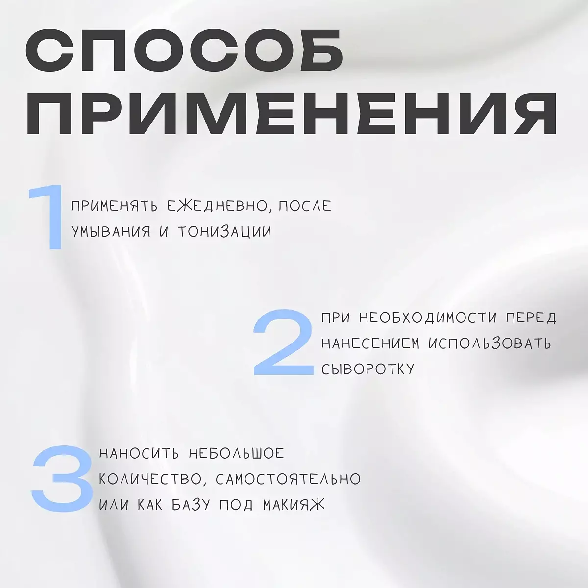 СПОСОБ ПРИМЕНЕНИЯ:В домашнем уходе использовать ежедневно, утром и/или вечером, после умывания и тонизации, самостоятельно или как базу под макияж. При необходимости перед нанесением крема использовать сыворотку или концентрат.