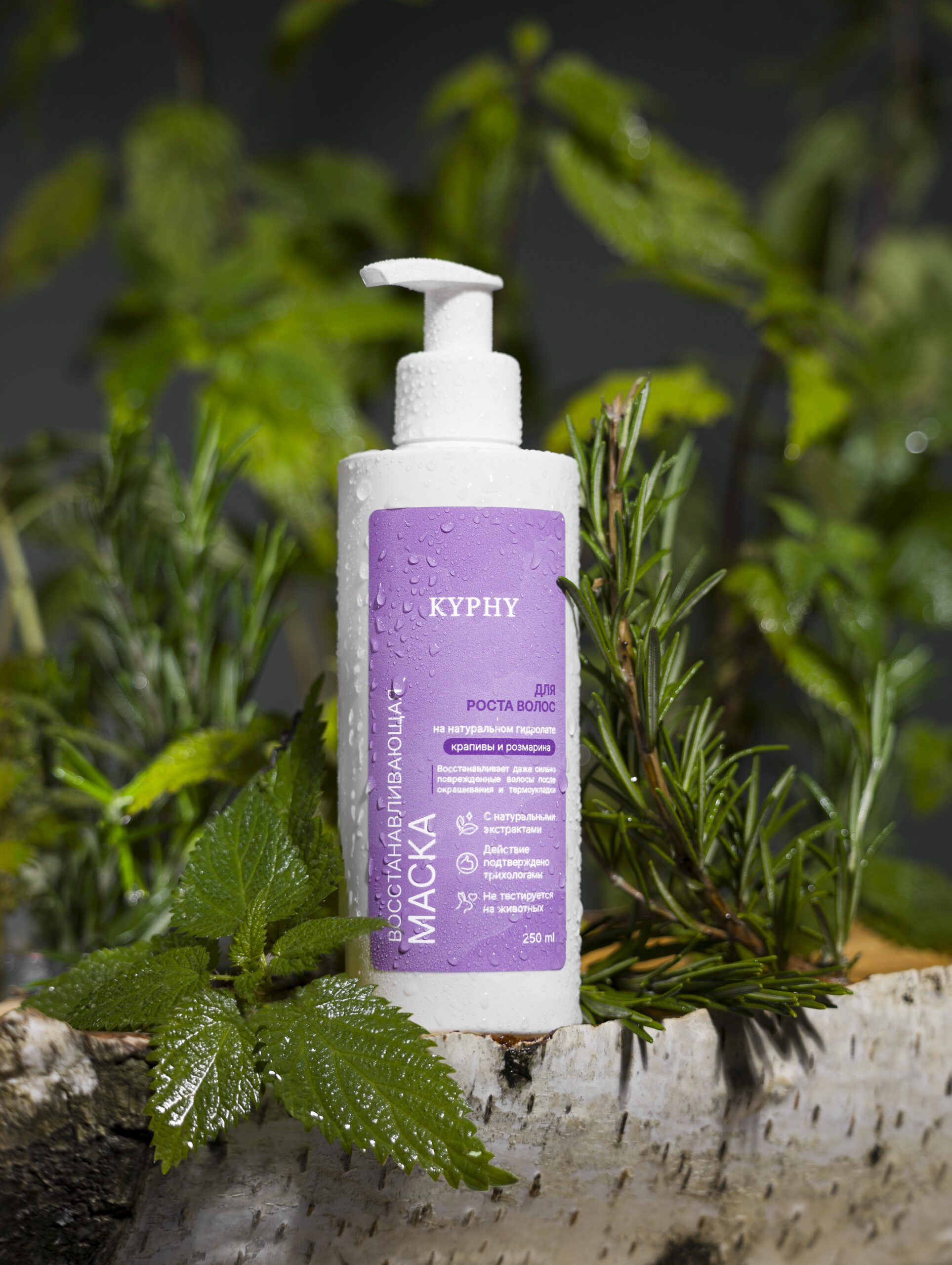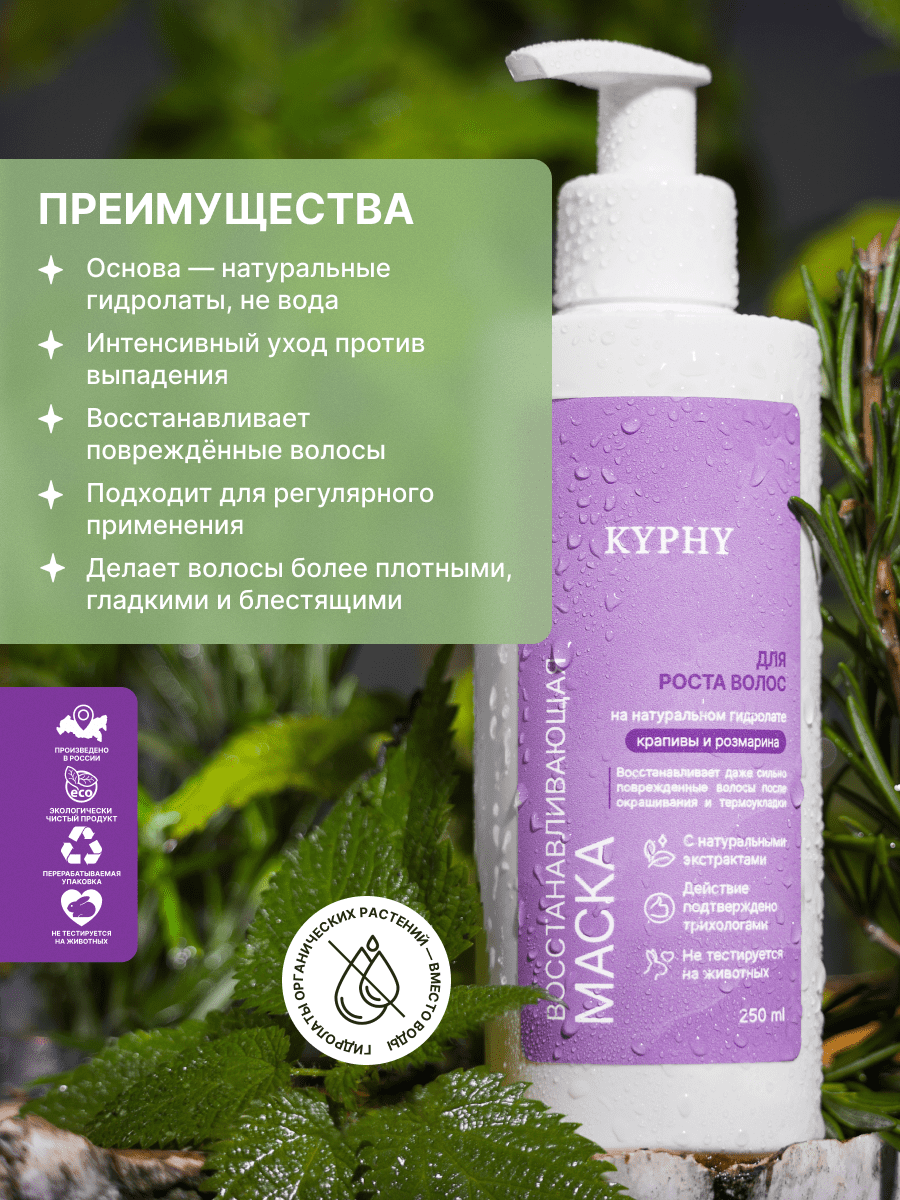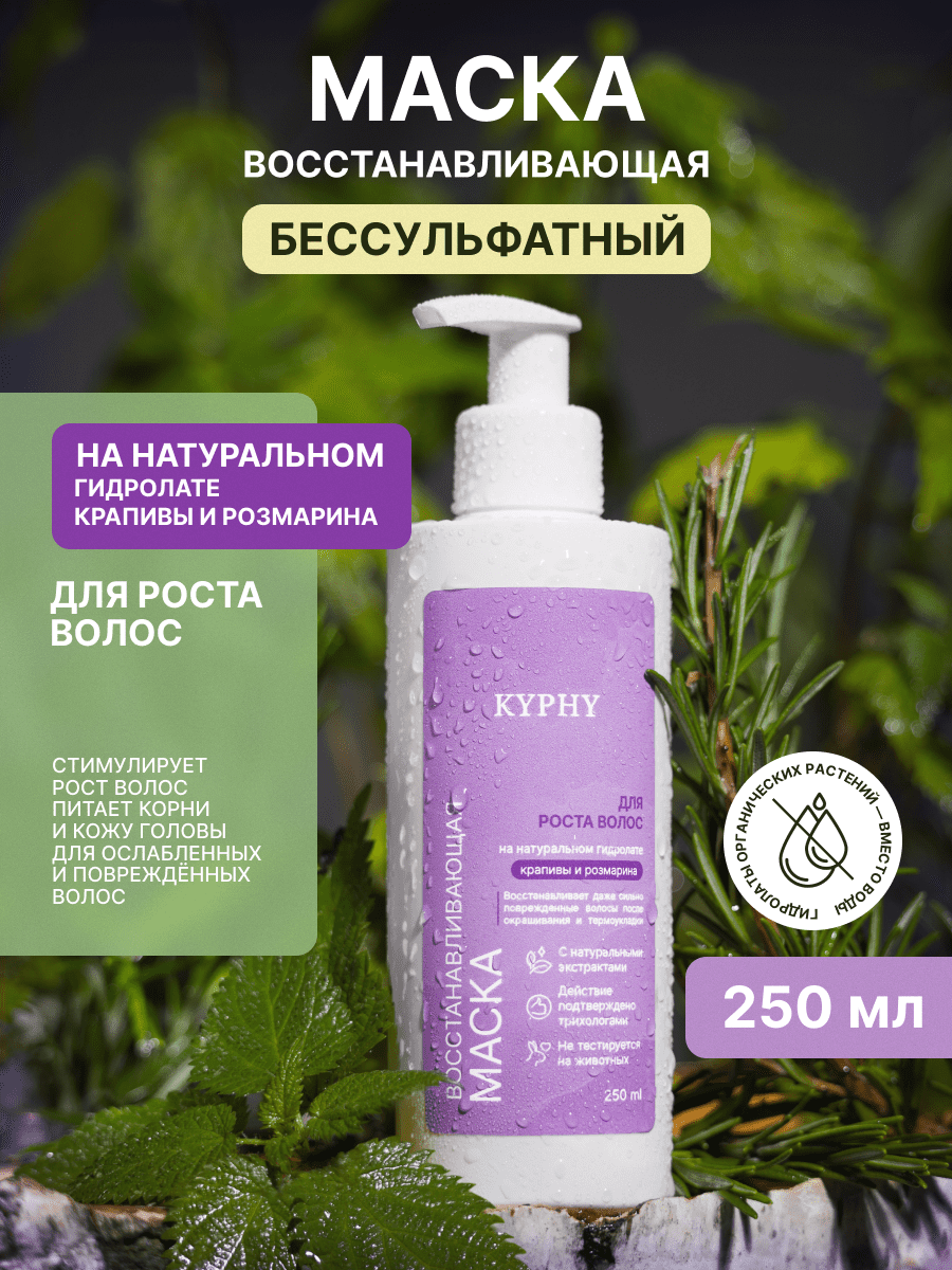 Маска для волос восстанавливающая для роста волос на натуральном гидролате крапивы и розмарина, 250 мл