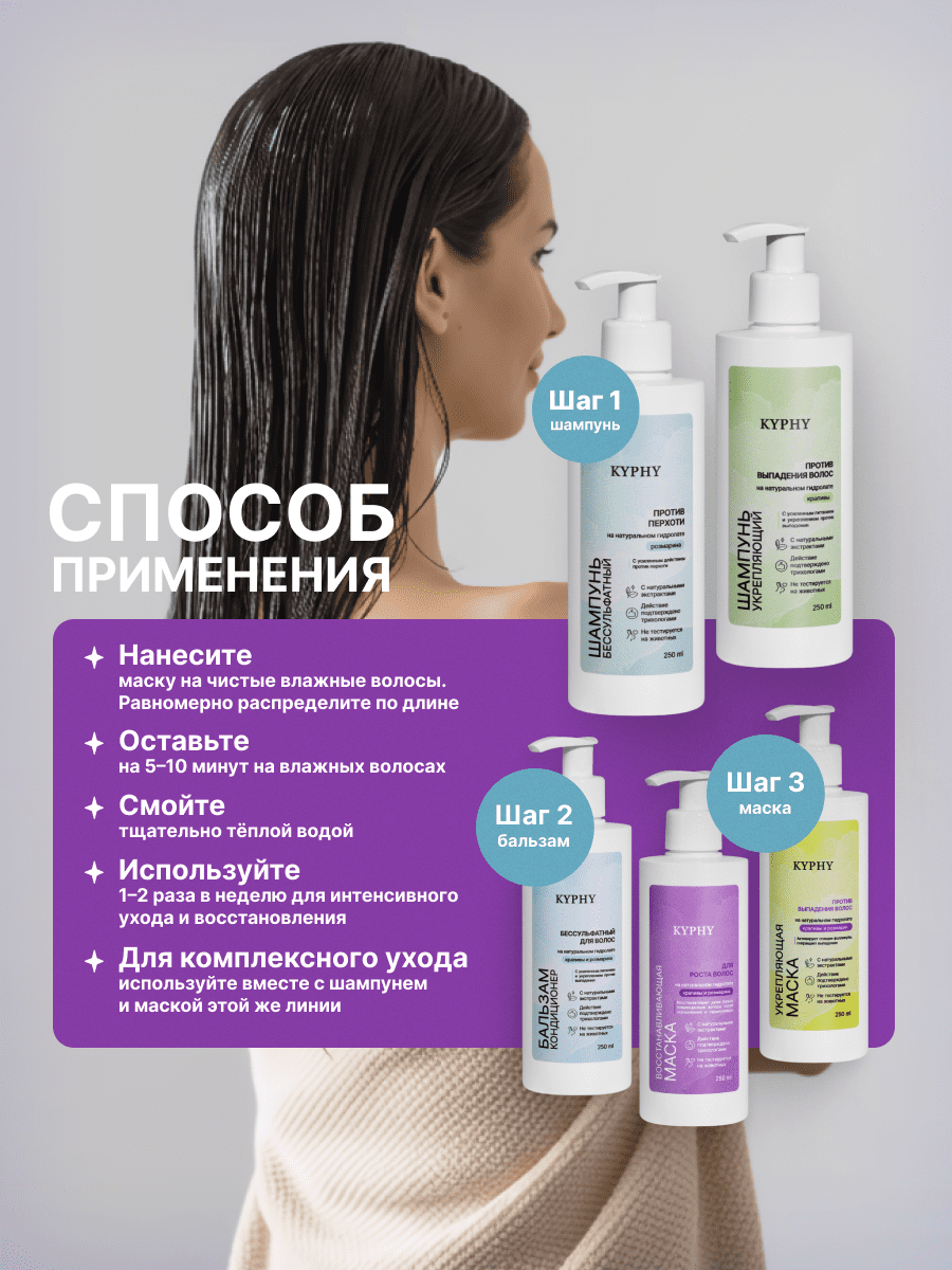 Твёрдый бальзам KYPHY для мужчин Уход, который работает на результат Этот бальзам создан специально для мужских волос — с учётом их особенностей, повышенной активности сальных желез и частых внешних нагрузок: солнце, вода, стайлинг, тренировки. Полное описание →
