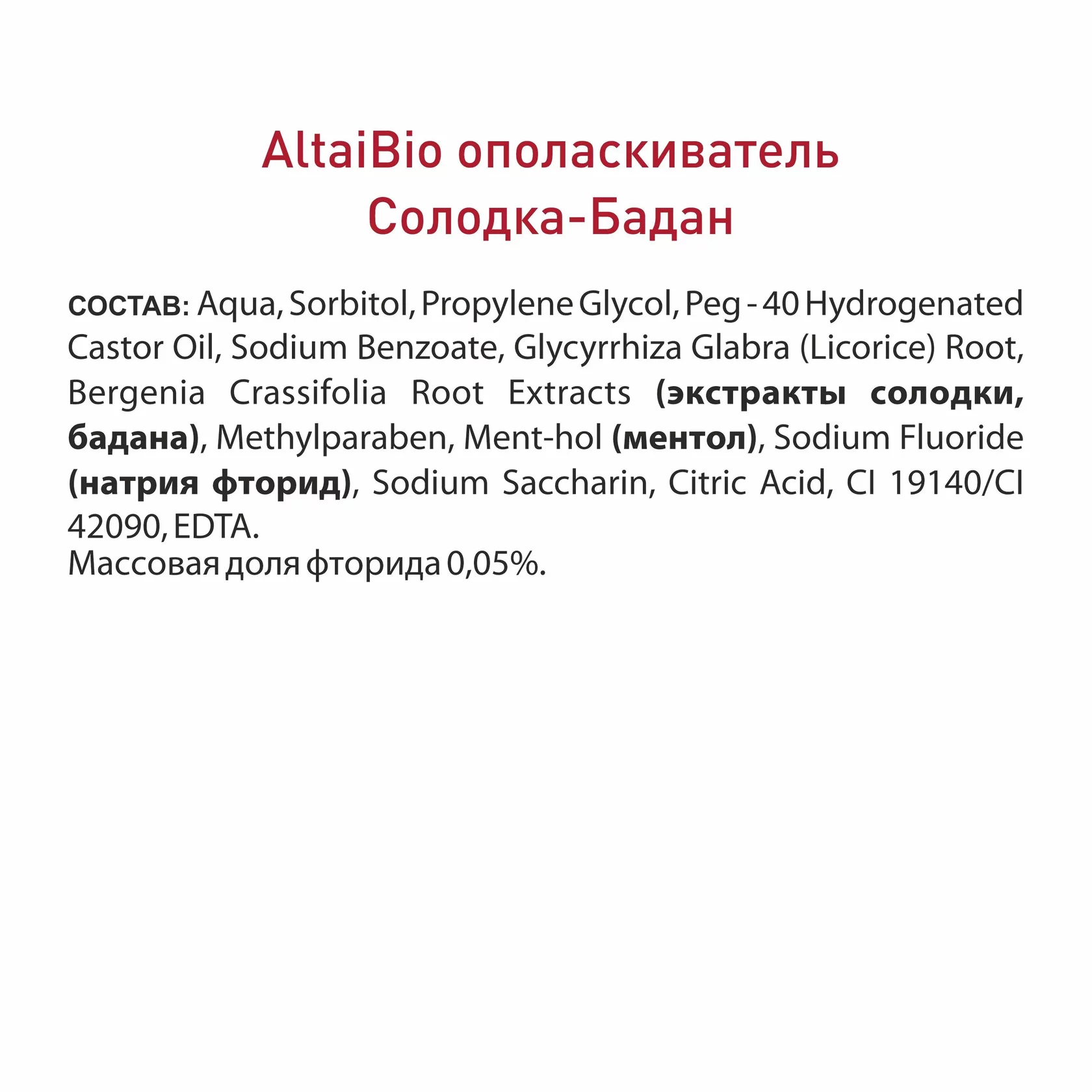 СОСТАВ: экстракт солодки, бадана, фторид натрия, ментол.