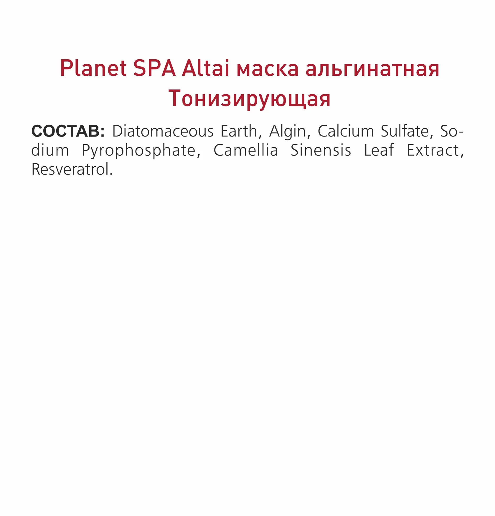 Planet SPA Altai Маска альгинатная «Тонизирующая» с ресвератролом и экстрактом зеленого чая, 30 г