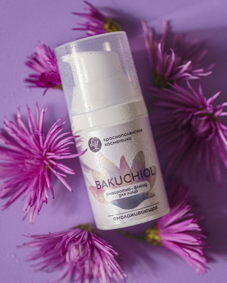 *Бакучиол — это растительный аналог ретинола, получаемый из семян и листьев Psoralea Corylifolia (псоралея лещинолистная). Главные свойства нашего бакучиола: комплексное омолаживающее действие; выравнивание тона кожи лица; подавление активности бактерий, вызывающих акне; сужение пор; успокаивающий эффект – снимает покраснения, раздражения и дискомфорт.