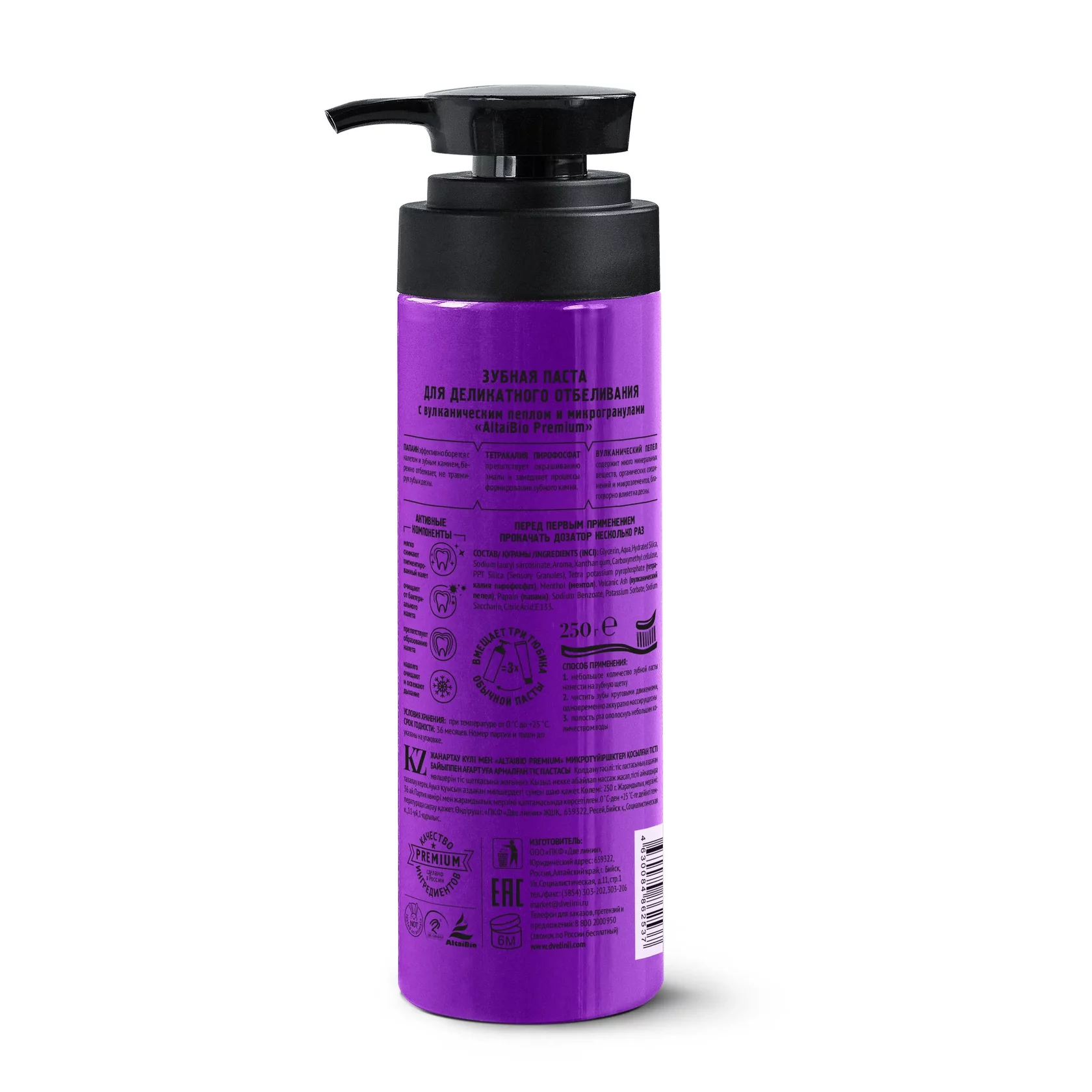 ОПИСАНИЕ: Сочетание папаина, отбеливающих микрогранул и вулканического пепла деликатно осветляет эмаль, надолго оставляя ее чистой и гладкой, обеспечивает эффективное очищение от бактериального налета и препятствует его последующему образованию.