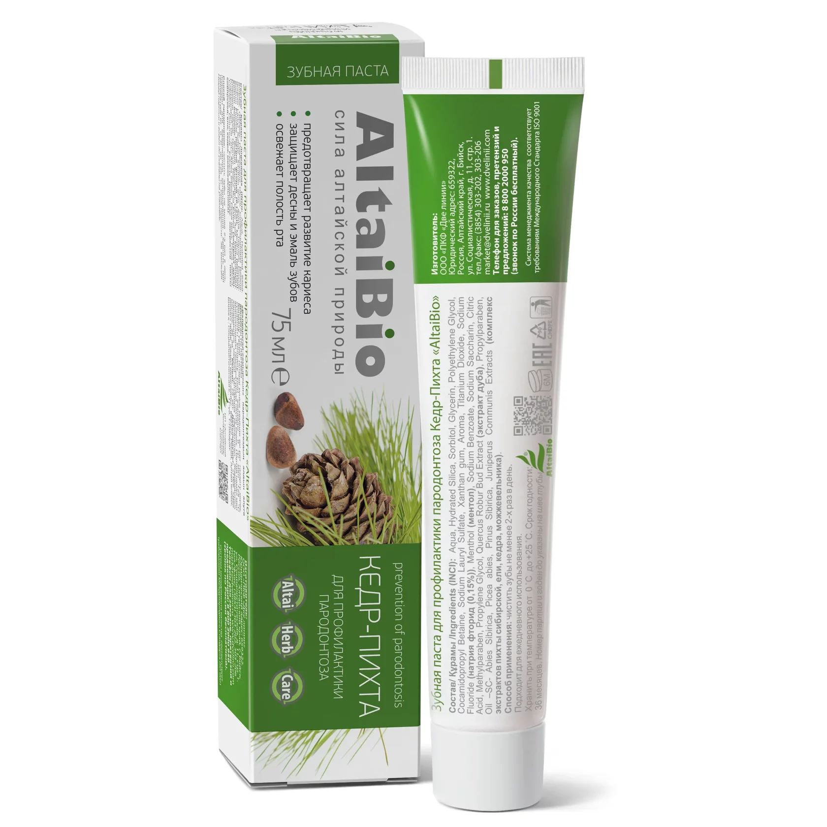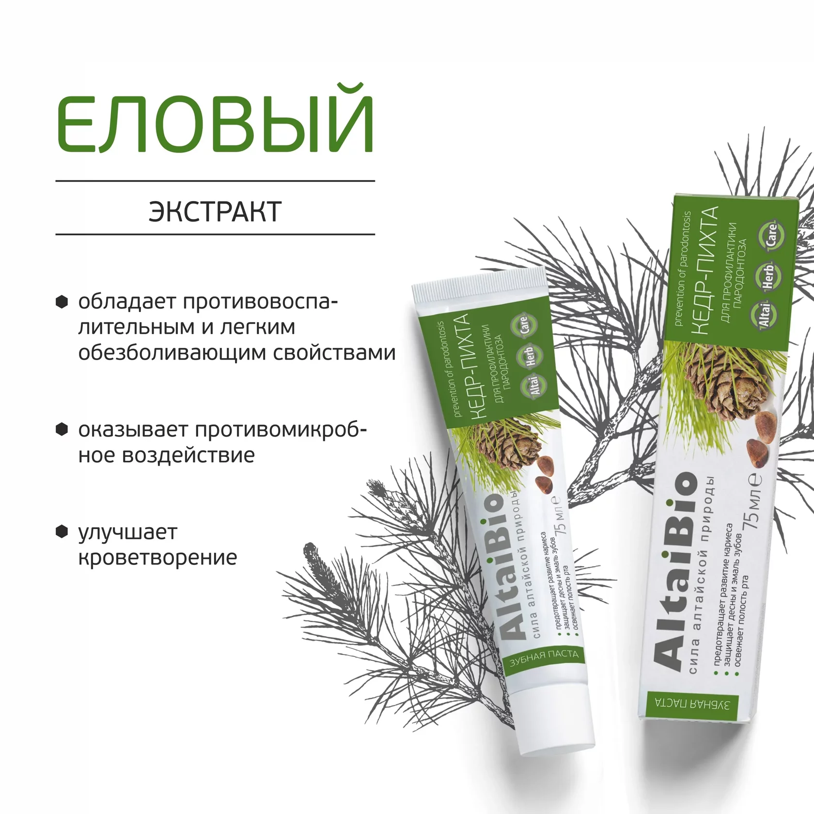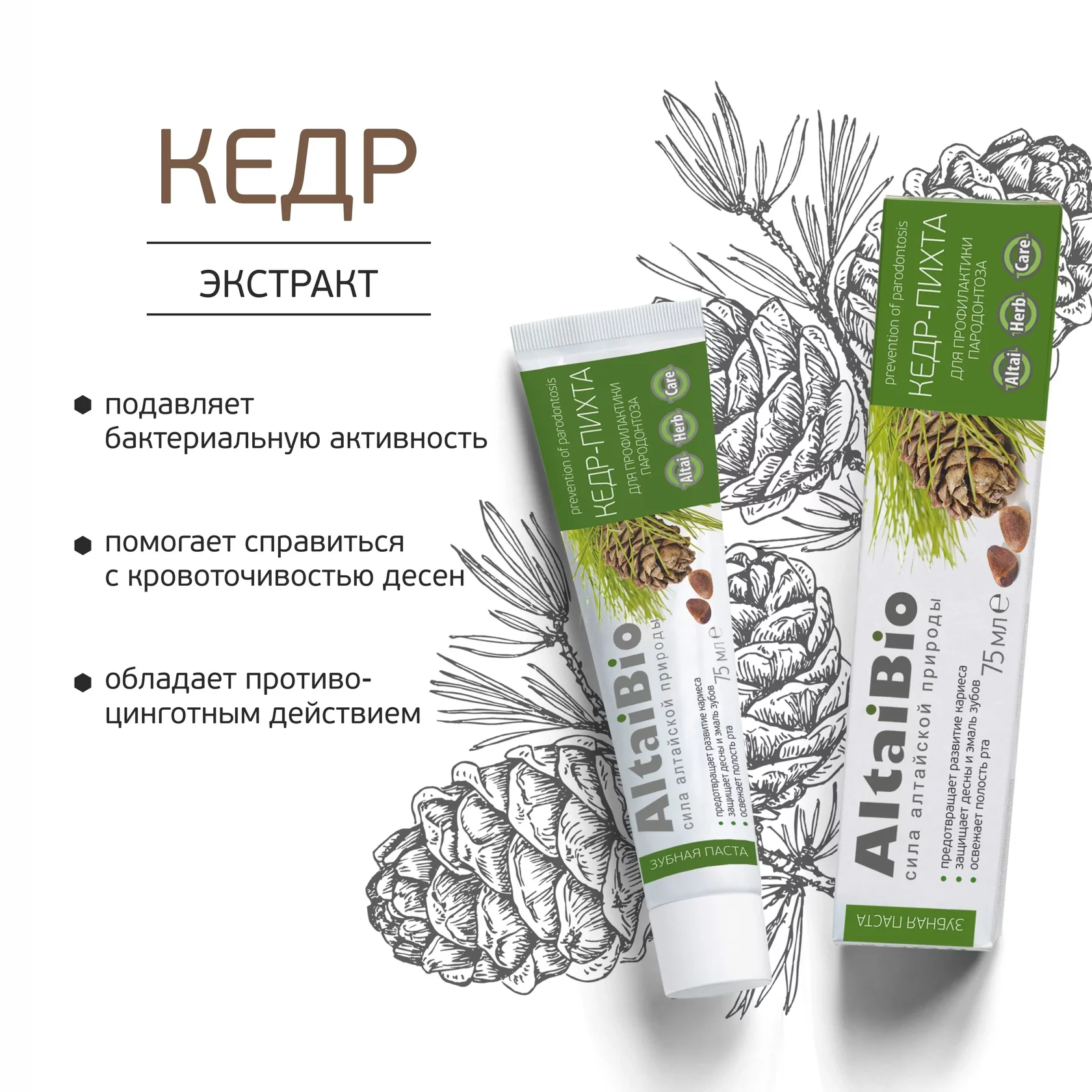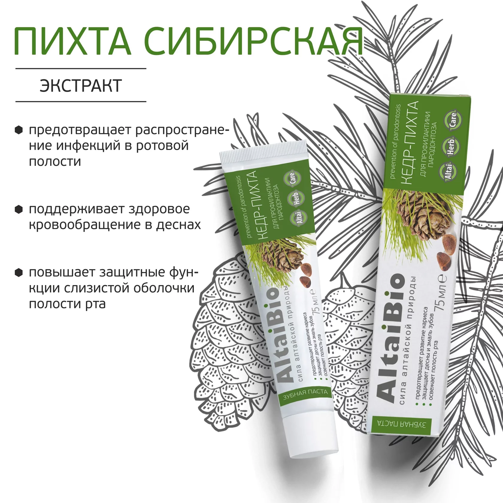 Зубная паста «Кедр-Пихта», профилактика пародонтоза, 75 мл