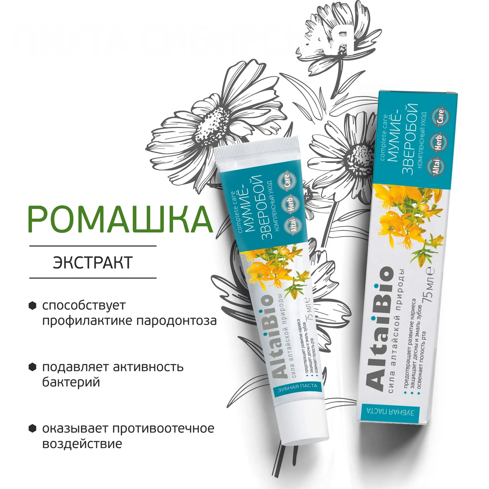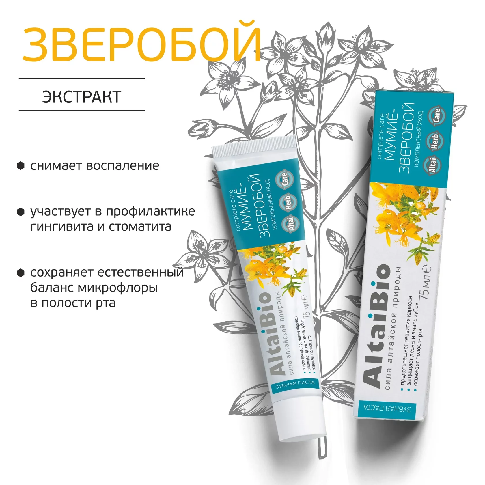 Зубная паста «Мумиё-Зверобой», комплексный уход, 75 мл